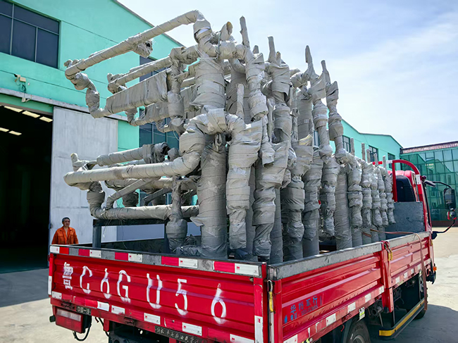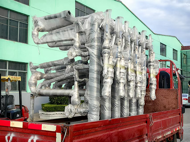 山東青島客戶定制采購的一批裝車鶴管已通過物流發(fā)往使用現(xiàn)場